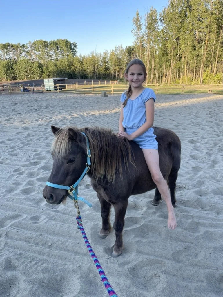 Our full week summer camps offer full-day adventure for beginner and intermediate riders aged 6+. Campers will enjoy several daily riding sessions (weather permitting), plus nature walks, outdoor games and activities, crafts, and lots of fresh air. All camps are supervised by a certified riding instructor and certified elementary school teacher who has 20 years of teaching experience and 30 years of experience riding and handling horses.
